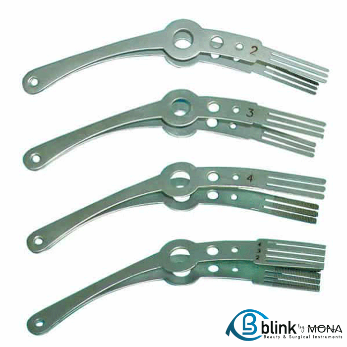 Note: BlinkByMona tool. The BlinkByMona forceps were designed to address the variability in tissue specimen thickness. They ensure consistent cutting of tissue specimens at 2, 3, or 4 mm thickness. The unique "trident-like" design of the 35 mm long, ergonomically angled prongs guarantees uniform cuts for tissue lengths that fit standard cassettes. The inner surface of the prongs is specially textured, providing enhanced grip to stabilize and slice challenging or hard-to-hold specimens.